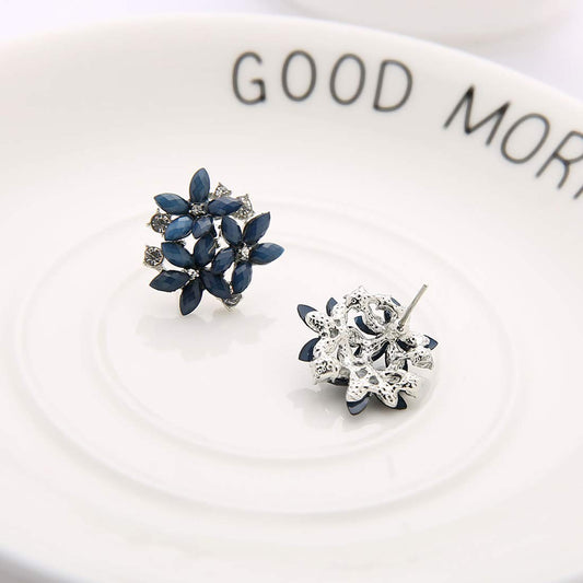Elegant Crystal Blue Flowers Blossoming Stud Earrings for Women and Girls