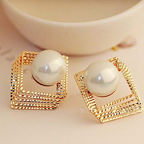 Classic Design Multilayer Square With Studded Pearl Gold Plated Designer Stud Earrings For Women And Girl's