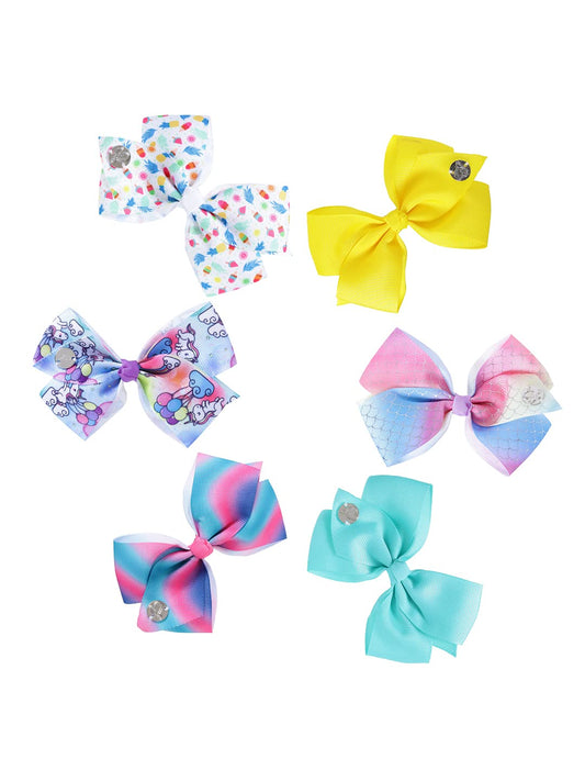 Hair Clips for Girls 6 Pcs Bow Hairclips Hair Accessories Printed Unicorn Mermaid Pattern Alligator Hair Clips for Kids and Girls
