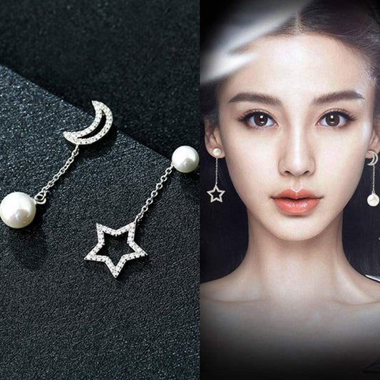Classic Design Moon and Star Clavicle Chain Stylish Gold Plated Choker Pendant Necklace for Women and Girl's