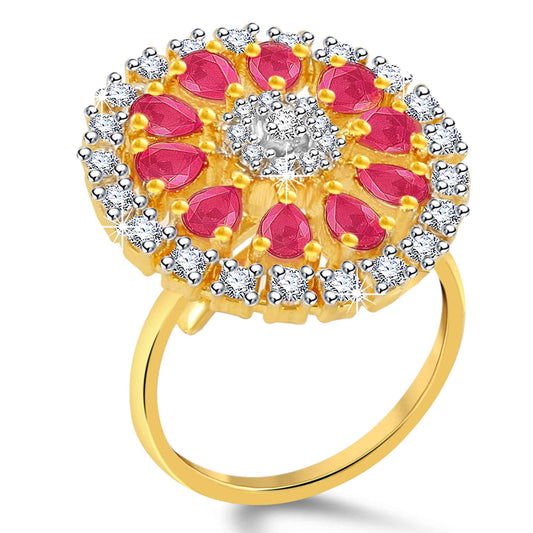 Premium A5 Grade American Diamond 18K Gold Plated Traditional Adjustable Ring for Women & Girls