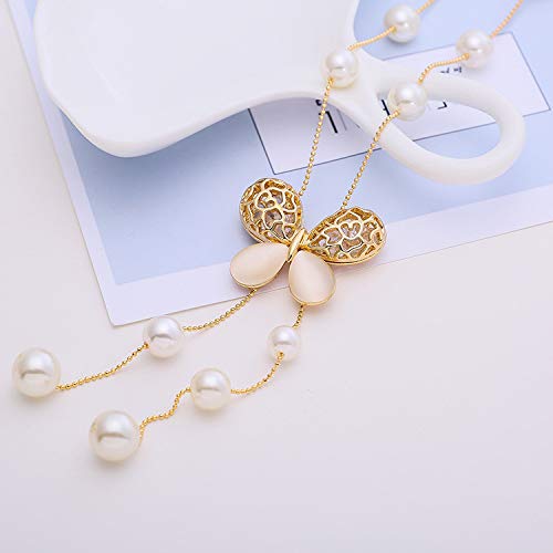 Golden Butterfly Opal and Pearl Long Chain Pendant Necklace for Women and Girls