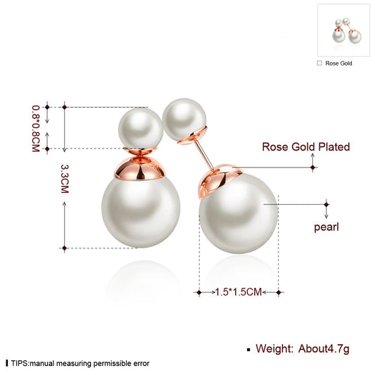 18K Rose Gold Plated Two Sided White Pearl Studs Earrings for Women & Girls