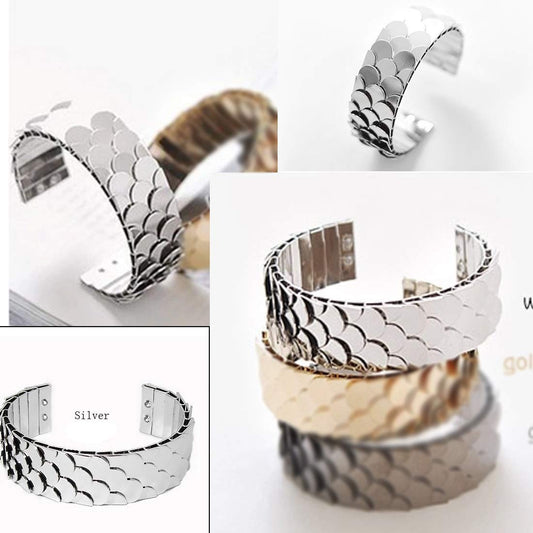 Latest Collection Fish Scale Design Silver Plated Cuff Bracelet for Women and Girls