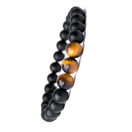 Reiki Healing Black Natural Tiger Eye Stone Beads Matte Three Lucky Beads Bracelet for Men and Boy's