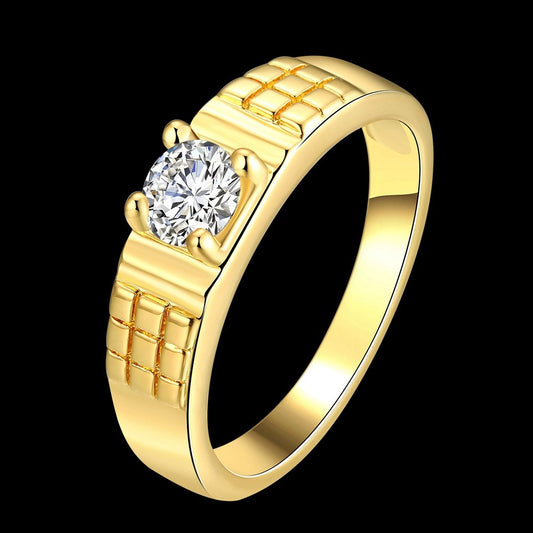 YELLOW CHIMES Single Stone Centered 18K Gold Plated Cubic Zircon Designer Ring for Men
