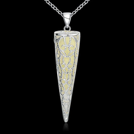 YELLOW CHIMES Glow-in-The-Dark Cone Style 925 Silver Plated (Hallmarked) Pendant for Girls and Women