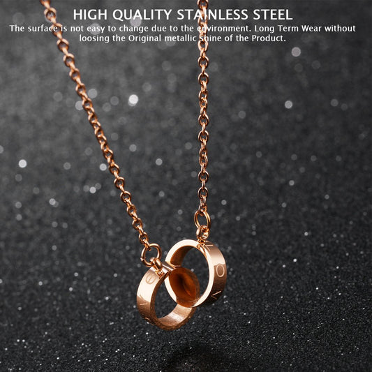 Western Fate Love Dual Ring Style Rose Gold Stainless Steel Never Fading Pendant for Women & Girls