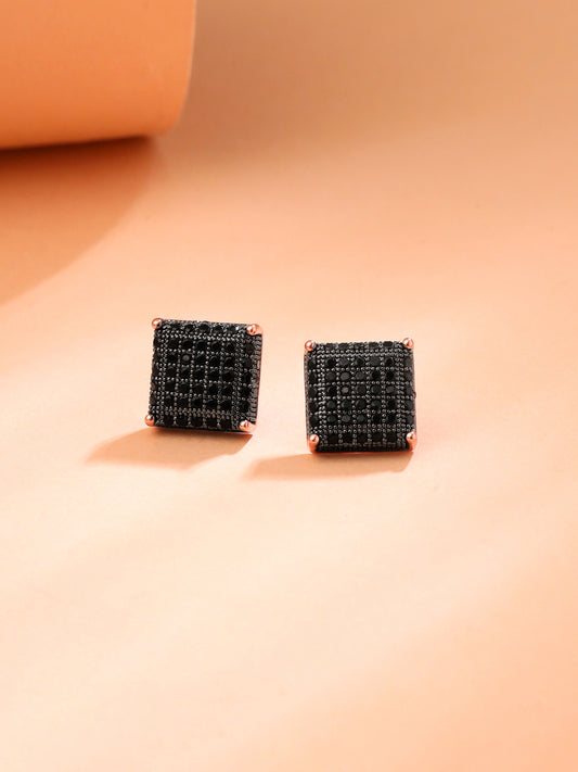 Black Stud Earrings for Men - Rhodium Plated Stainless Steel | Gift for Him