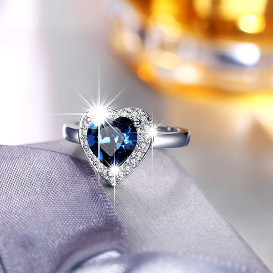 Crystals from Swarovski Blue Cystal Heart Ring for Women and Girls