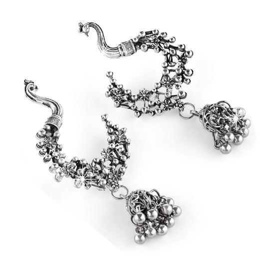 Handmade Peacock Carved Oxidized Silver Plated Jhumka Jhumki Earrings for Women and Girls
