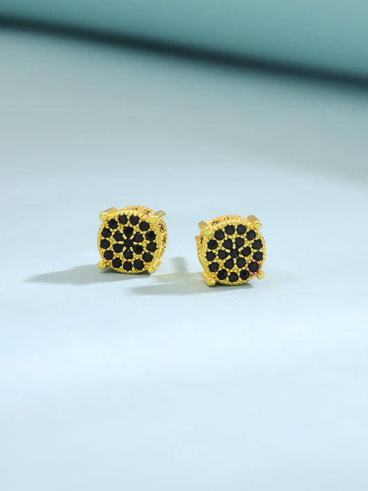 Combo: Gold Plated Black Stone Studded Men Stud Earrings | One Size | Lightweight | Gold & Black