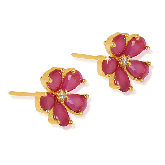 Ethnic Collection: Pink Floral Ruby Ear Studs for Women | 18K Gold Plated