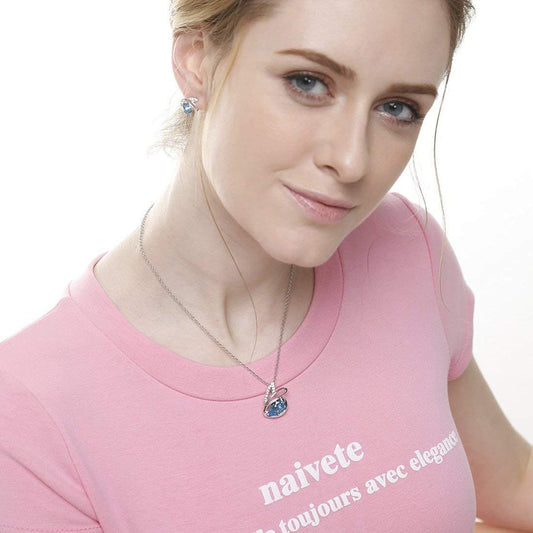 Pendant Set for Women and Girls Blue Crystals from Swarovski Pendant Set Silver Tone Chain Pendant With Earrings Set for Girls | Birthday Anniversary Gift for Wife Birthday Gift for girls and women