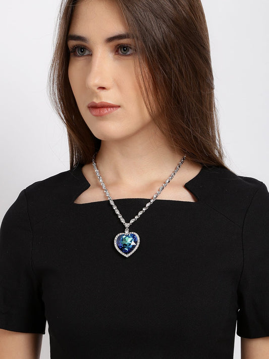 YELLOW CHIMES Swarovski Elements Ocean Blue Heart Crystal-Full Strand Crystal Necklace for Women