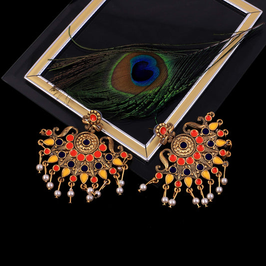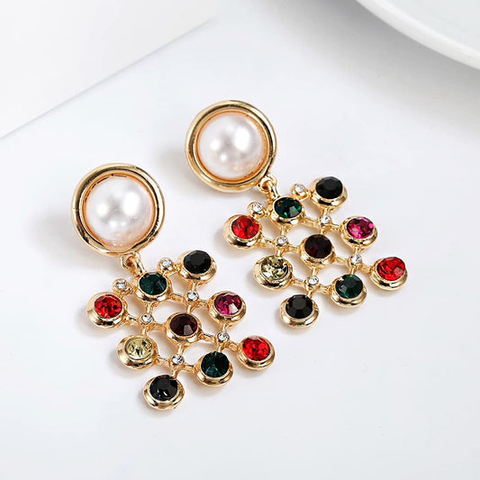 Chic Drop Earrings: Multicolor Stone & Pearl Studded | 5cm | For Women & Girls