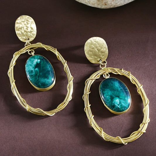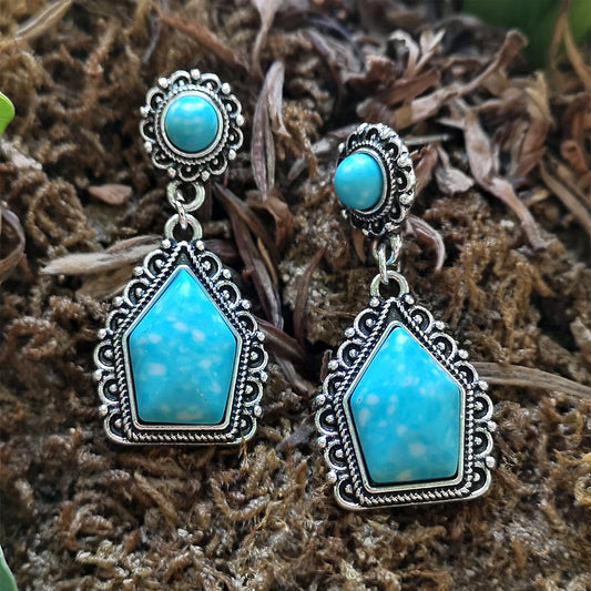 Geometric Drop Earrings with Blue Stone Detailing | 3.8cm | Elegant Design | For Women