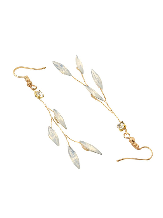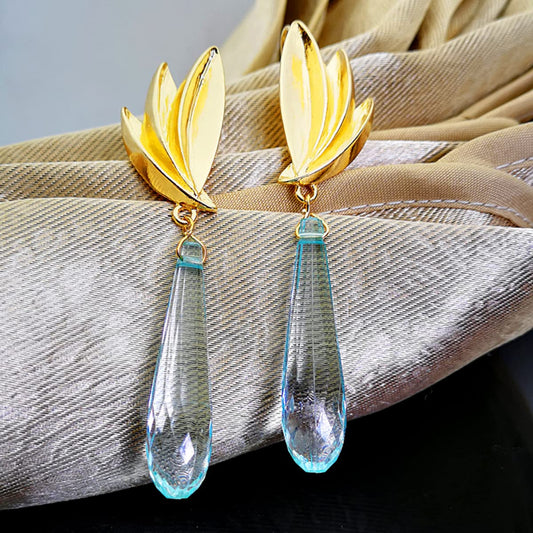 Stunning Gold Toned Petal Blue Tear Drop Stone Earrings | 7.5cm | For Women and Girls