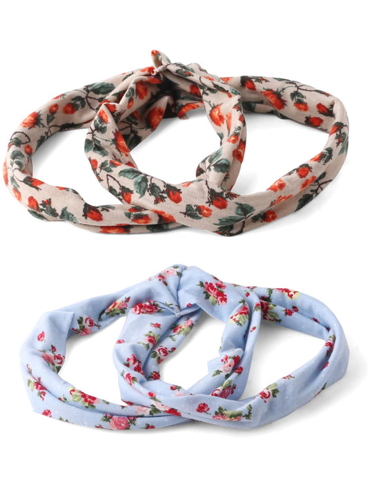 Head Bands for Women Set of 2 PCs Headbands Layered Multicolour Floral Print Hair Accessories Broad Fabric Hairband for Women and Girls