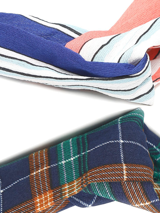 Hair Band Printed Criss Cross Head Bands, Fabric Knot Elastic Headband for Women and Girls (Pack of 4) - Multicolor