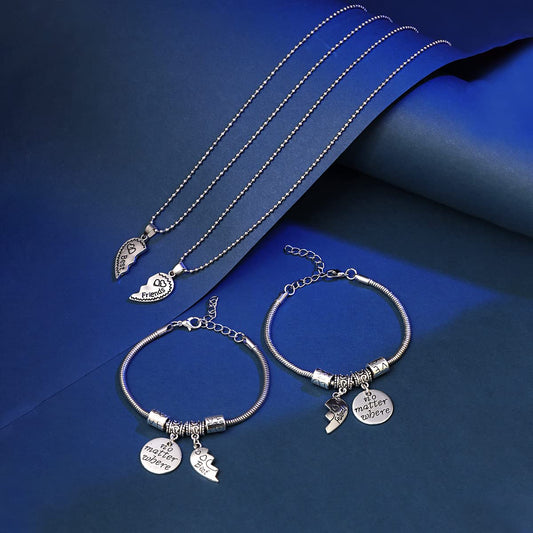 4 PCs Combo Best Friends Forever Silver Plated Heart Charm Couple Bracelet Pendent for Girls and Boys (Unisex)