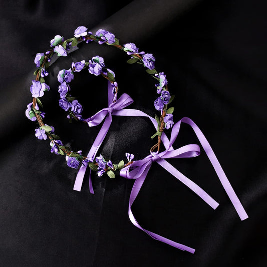Floral Tiara and Bracelet Set for Women Purple Bridal Wedding Headband Hair Tiara For Women Bridesmaid Tiara Vines Set Hair Accessories.