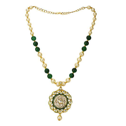 Latest Modern Pearl Kundan Traditional Adorable Necklace With Stud Drop Earrings For Women (Green)