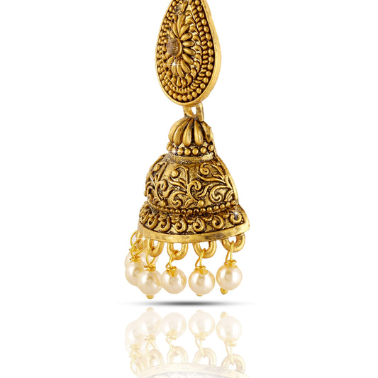 Traditional Jhumka/Jhumki Earrings Temple Jewellery Artistic Crafted Antique Oxidized Matte Gold Plated Pearl Earrings for Womens & Girls