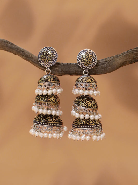 Combo: 3 Pairs of Silver Oxidised Jhumka Earrings | Traditional Design | 3.5 cm Length | Silver
