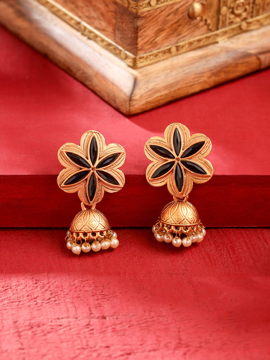 Jhumka Earrings: Ethnic Gold Plated Floral Design | Lightweight | 3.9 cm | Gold
