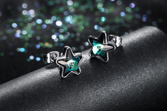 A5 High Grade Crystal Designer Blue Star Crystal Earrings for Women and Girls