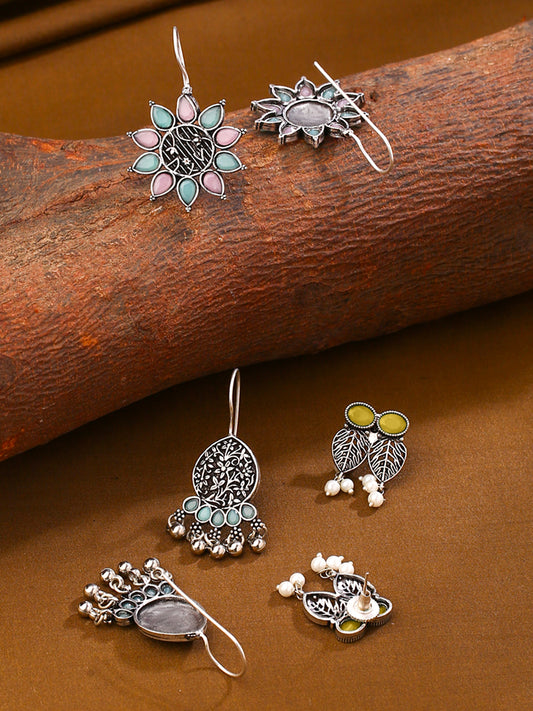 Silver Oxidised Earrings for Women & Girls | Traditional Oxidised Silver Drop Earrings Combo of 3 Pairs Monalisa Stone Studded Earrings | Birthday Anniversary Gift for Wife Women