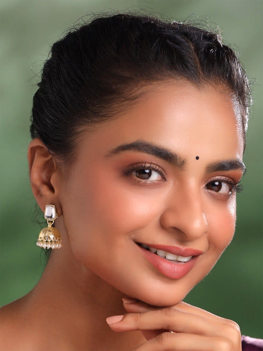 Kundan Jhumka Earrings for Women | Traditional Gold Plated Jhumki Earring for Girls | Golden Kundan Jhumkas | Eternal Elegance | Fashion Accessories for Women | Birthday Anniversary Gift