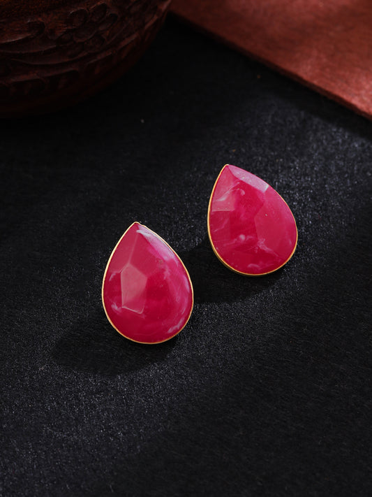 Stud Earrings for Women | Fashion Pink Stone Studs Earrings for Girls | Gold Plated Drop Shaped Women Earrings | Birthday Anniversary Gift for Girls Wife