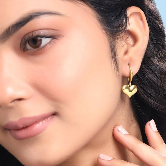 Earrings for Women and Girls Fashion Golden Dangler Earrings Gold Plated Valentine's Day Special Love Heart Danglers Earrings | Birthday Gift for Girls & Women Anniversary Gift for Wife