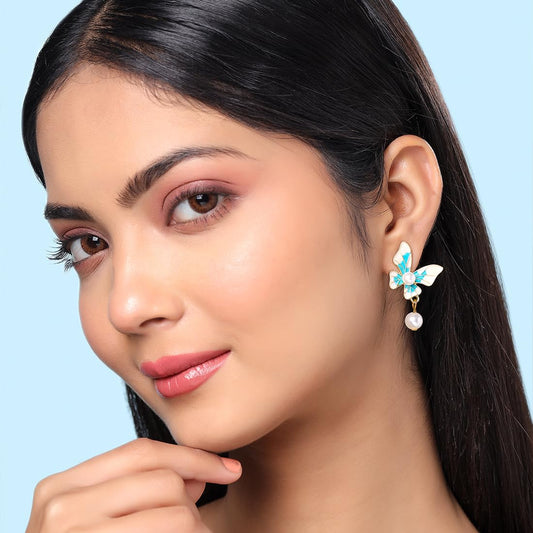 Earrings for Women and Girls Fashion Multicolor Drop earrings | Gold Plated Enameled Butterfly Pearl Drop Earrings | Birthday Gift for Girls and Women Anniversary Gift for Wife
