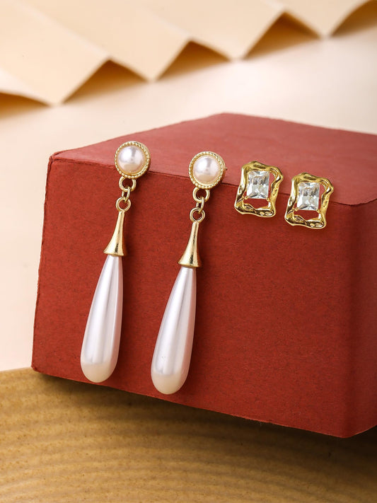 Earrings for Women Fashion Combo of 2 Pairs Gold Plated Pearl Drop Stud Earrings I Birthday Gift For girls and women Anniversary Gift for Wife