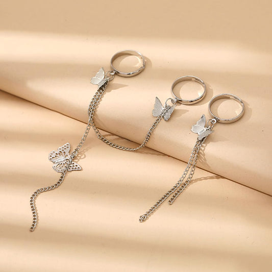 Rings for Women and Girls Chain Finger Rings | Butterfly Adjustable 5 Pieces Silver Punk Chain Finger Rings Five Fingers Open Ring | Birthday Gift For Girls and Women