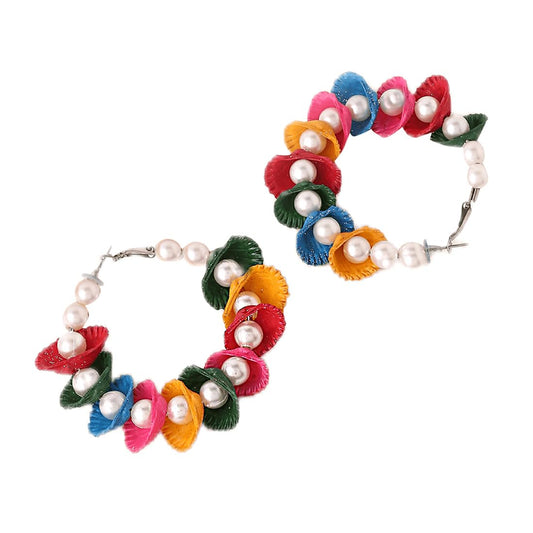 Earrings for Women Multicolor Petals Studded Hoop Earrings for Women and Girls