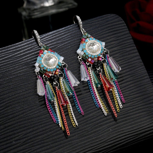 Exclusive Collection Multicolor Silver Plated Base Metal Cubic Zircon Crystal Element Tassel Earrings For Women
