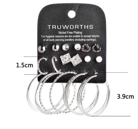 9 Pair Assorted Combo Crystal Stud and Big Hoops Earrings for Women and Girls (Hoops & Studs)