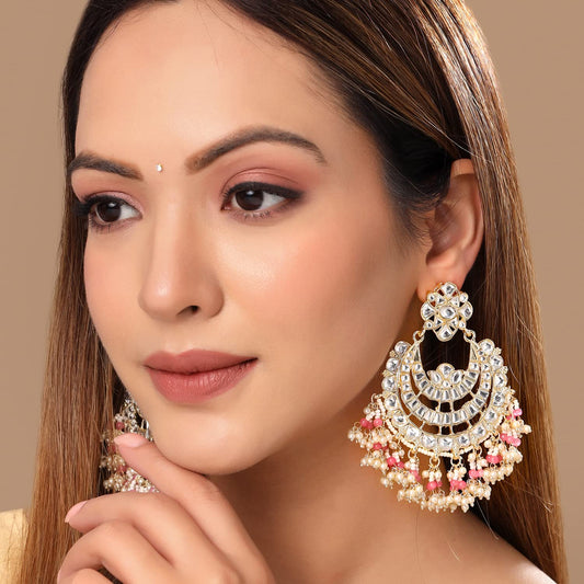 Earrings for Women and Girls Kundans Chandbali | Gold Plated Kundan Studded Drop Chandbali Earrings | Birthday Gift for girls and women Anniversary Gift for Wife