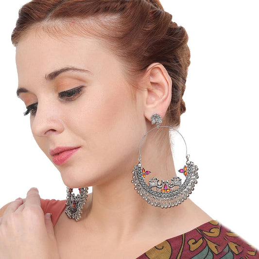 Oxidised Earrings for Women Silver Oxidised Peacock Chand Bali Earrings for Women and Girl's.