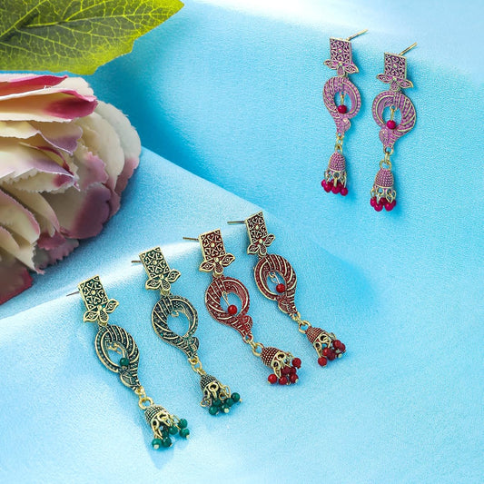 Earrings for Women and Girls Traditional Multicolor Jhumka Earrings Oxidised Gold Plated Combo of 3 Pair Jhumka Earrings | Birthday Gift for Girls & Women Anniversary Gift for Wife