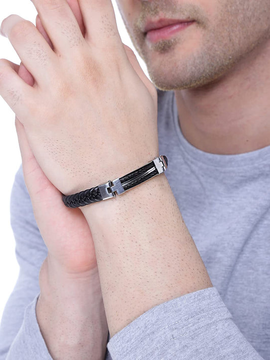 Bracelets for Men and Boys Fashion Black Bracelet for Men | Silver Toned Stainless Steel Western Style Chain Bracelet for Men | Birthday Gift for Men and Boys Anniversary Gift for Husband