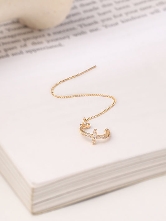 Earrings For Women Gold Tone Thread Chain With Clip On Earcuffs Earrings For Women and Girls