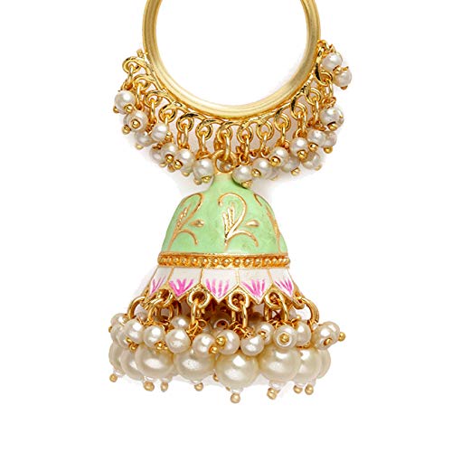 Meenakari Jhumka Earrings Handcrafted Stylish Gold toned Traditional Green Jhumka Hoop Earrings for Women and Girls (Green,Gold)