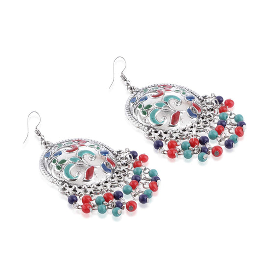 Stylish Meenakari COMBO Silver Oxidized Antique Chandbali Earrings for Women and Girls