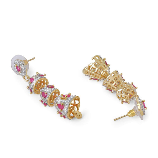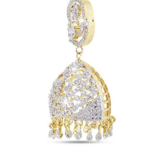 Classic AD/American Diamond Studded 18k Gold Plated Handcrafted Designer Layered Jhumka/Jhumki Earrings for Women & Girls