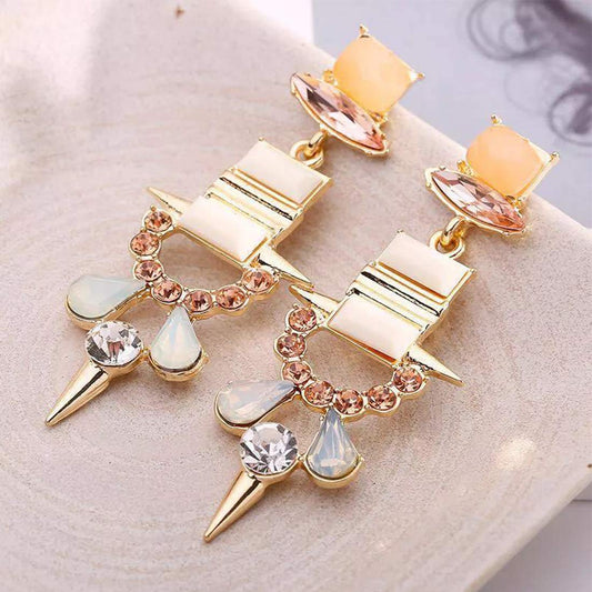 Antique Design Crystal Retro Style Gold Plated Dangle Earrings for Women and Girls